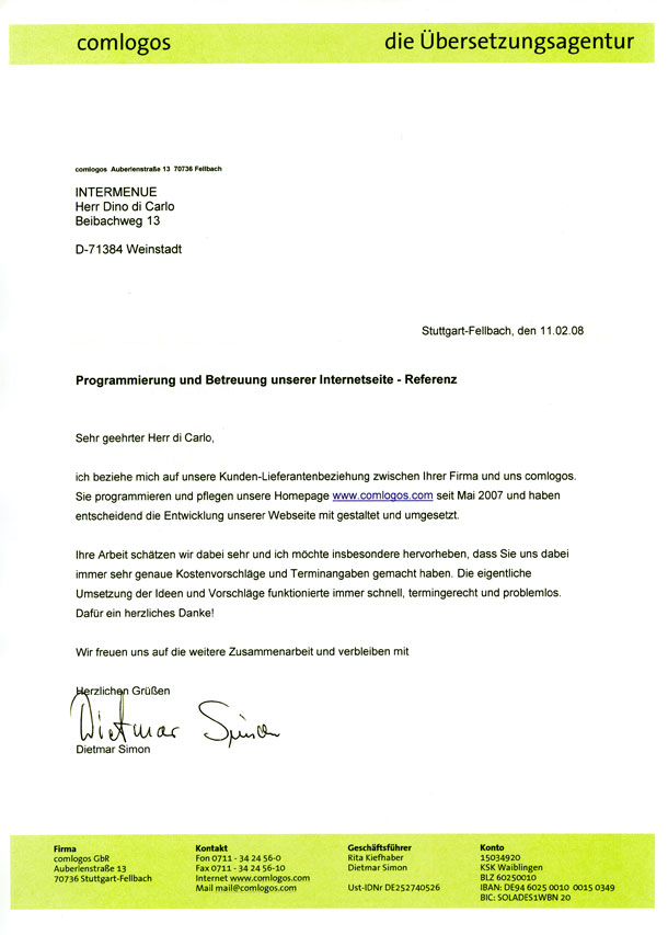 Die Arbeitsweise, die kundenorientierten Lösungsansätze, die Qualität sowie die flexible Preisgestaltung von INTERMENUE macht dieses Unternehmen zu einem empfehlenswerten Partner ...