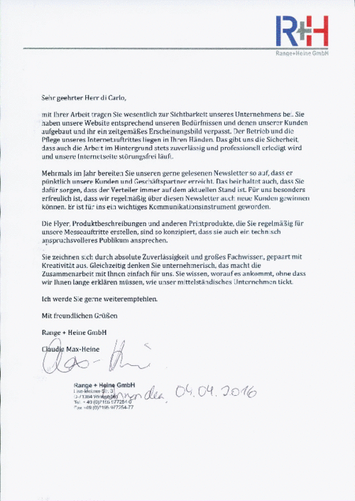 Das Internet ist und bleibt ständig in Bewegung, auch unsere Webseite geht nun mit der Zeit. Sie hatten immer einen konstruktiven Lösungsansatz auf unsere Wünsche und haben diese sehr schnell und professionell realisiert.